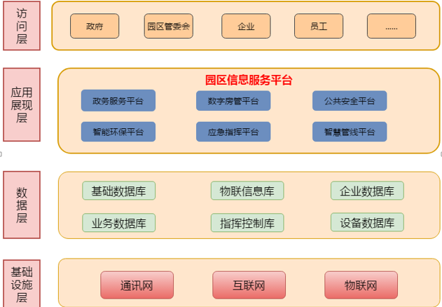 当前园区管理面临的主要问题有:政策传达缓慢,反馈不及时;园区内信息系统孤岛严重;发生突发事件时应急响应缓慢,事件处理不及时;园区之间相互竞争激烈,需要利用信息化提升自己竞争力;能源浪费严重;由于园区管理体量大,对于非法人员、车辆进入,发生盗窃、破坏等行为,监管困难。
