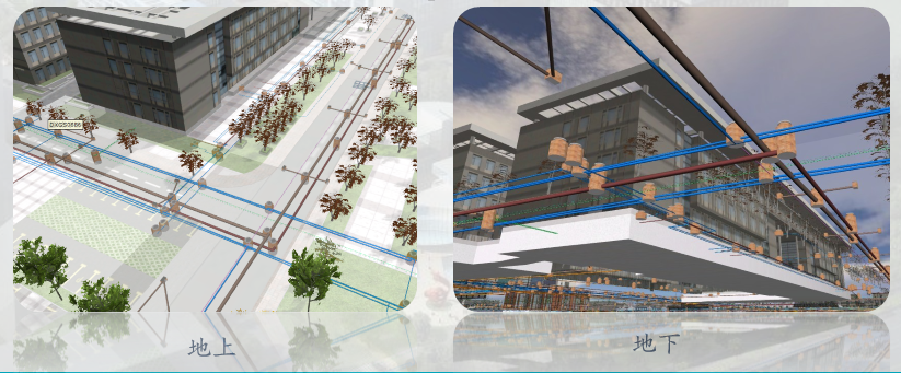 园区智慧管线平台实现地上、地下一体化管理,三维设施数据、管线数据、三维地表数据以及城市景观数据的综合管理。通过管线的各种属性综合查询及统计,如管线类型,材质,管径,敷设方式,使用状态等,可定位到指定管线。通过管段的铺设年限,自动计算出所有已经超期服役的管段、设施、设备等,以列表和三维地图的方式提醒用户。