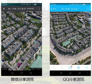 只需要一个链接或一个二维码,就可以可以在手机上,或者是微信、微博、QQ等交友分享平台上分享景区真三维模型数据。分享平台可以在线浏览景区和景点数据,走到哪看到哪,轻松愉快的出行和游玩。