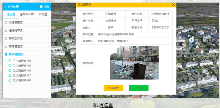 对景区的设施、地下管线等进行精细化管理,实现基础设施的浏览、查询、定位、管理等功能。有利于发生故障时快速定位,提高景区管理水平。日常巡查过程中可通过手机对异常情况拍照上传,管理人员通过平台快速查看情况,指派人员处理,实时短信通知